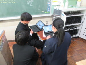 中学生がどのようにスマホを使っているのかについて座談会を行っています。今日は3年生、昨日は2年生で行いました。LINEはほぼ使っていないようです。