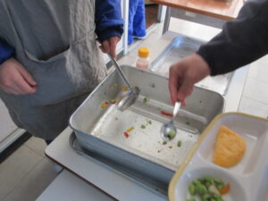 1年生の家庭科では調理実習が始まります。何を作るか検討中です。1クラスの人数が増えたので、調理器具等の数を確認しています。