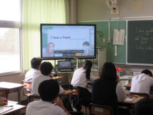 授業前に英語でじゃんけんのアクティビティを行いました。その後は教科書の英文の読み方を確認しています。