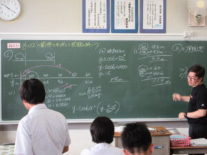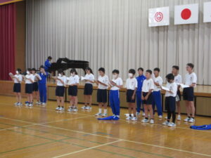 教育実習が最終日となりました。実習生を囲んでレクをしています。