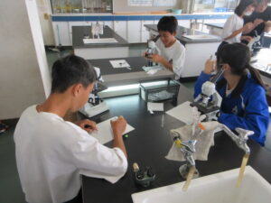 水に溶けた硝酸カリウムと食塩を取り出す実験をしています。温度調節が大変そうです。