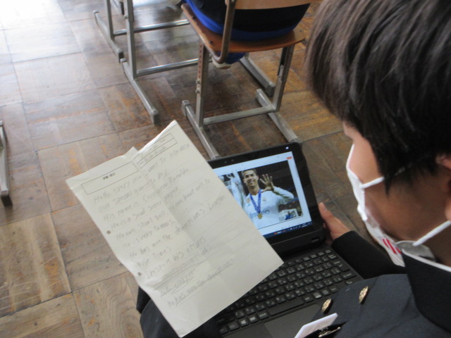 My Favorite Things(1年) 2026年2月27日 最終更新日時 : 2026年2月27日 kumagaya_edit ALTの先生に、自分の好きなものを写真とともに英語で紹介しています。準備してきた原稿があるとはいえ、緊張しています。