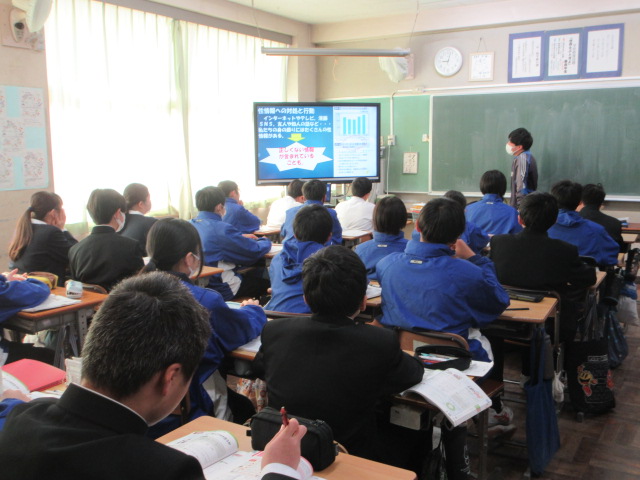 保健の学習として、SNSの危険性と、関わり方について学習しています。