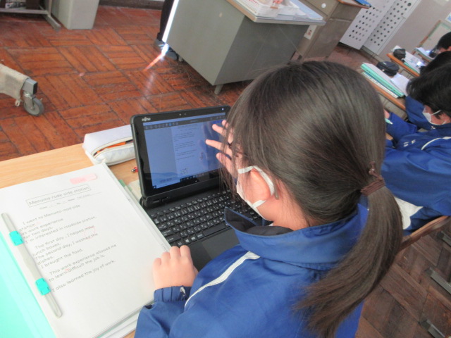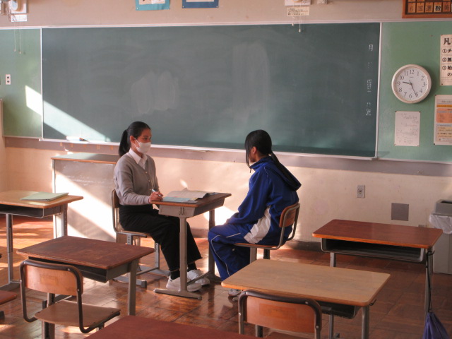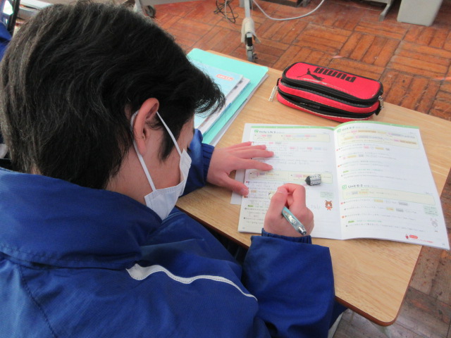 Speaking Test(2年) 2025年12月19日 最終更新日時 : 2025年12月19日 kumagaya_edit ALTの先生とのテストをしながら、教室ではワークや英語レポートのまとめを行っています。
